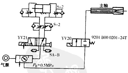 數(shù)控沖床氣動系統(tǒng)裝置的氣源容易獲得,機床可以不必再單獨配置動力源。裝置結(jié)構(gòu)簡單,工作介質(zhì)不污染環(huán)境,工作速度快,動作頻率高,適合于完成頻繁起動的輔助工作。過載時比較安全,不易發(fā)生過載損壞機件等事故。下圖為常用的氣動系統(tǒng)原理圖。