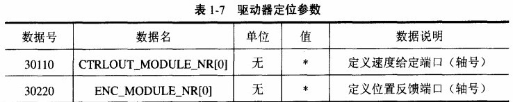 在S02D中,總線的配置完成后,需要通過機床參數MD30110來定位每個配置軸的給定值輸出接口的地址,并通過機床參數MD30220來確定位置反饋接口的地址。這樣數控系統就可以進行位置調節,將每個軸的速度給定通過總線送到該軸的驅動器,并且通過總線讀取該軸的實際位置。驅動器定位參數配置如表1-7所示。