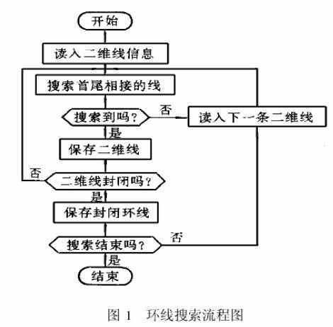 二維CAD圖形中的圖形繪制方法不一定能保證各圖索按次序首尾相接形成封閉的環線,因而在數控加工代碼生成時需要將圖形中的環線分離出來,作為加工對象的邊界因此CAD圖形處理的第一步要將離散的二維線整理成按先后次序首尾相接的環線,其搜索流程如圖l所示