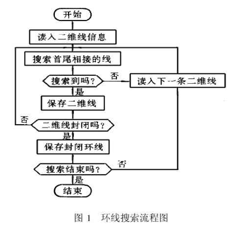 二維CAD圖形中的圖形繪制方法不一定能保證各圖索按次序首尾相接形成封閉的環線,因而在數控加工代碼生成時需要將圖形中的環線分離出來,作為加工對象的邊界因此CAD圖形處理的第一步要將離散的二維線整理成按先后次序首尾相接的環線,其搜索流程如圖1所示