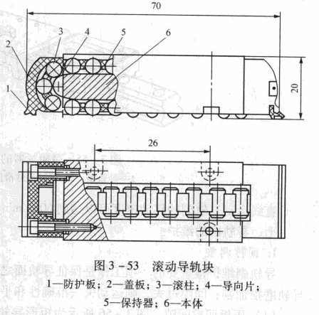 圖3 -54所示為T(mén)BA- UU型直線滾動(dòng)導(dǎo)軌(標(biāo)準(zhǔn)塊)。它由4列滾珠組成,分別配置在導(dǎo)軌的兩個(gè)肩部,可以承受任意方向(上、下、左、右)相比較,后者可承受顛覆力矩和側(cè)向力。