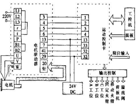 隨著IPC機性能的提高和價格的降低,用IPC機開發CNC系統的巨大優越性逐漸顯現出來田。在該數控沖境機床的控制系統設計方案中,工拄機IPC作為上位機,而將DMC3400運動控制卡嵌入到工控機當中,以實現加工過程中對機床的運動控制。整個機床的數控系統控制接線圖見圖3。其中,工控機用來負責處理控制系統中的非實時任務,如人機界面的管理