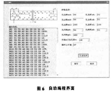 (4)自動編程該機床加工產品種類多,加工程序代碼的編寫需要占用很長時問.故控制程序中編寫了自動編程模塊。編程思想是采用疊加原理針對要加工零件的3個沖壓工位:先只考慮A工位,根據A工位的各個參數編寫出零件的加工該監控系統硬件可靠.軟件設計可以很好地實現實時監控和報警保護等功能,達到了水庫閘門自動化監控的目的。程序代碼1:再只考慮B工位,根據B工位的各參數編寫出零件的加工程序代碼2.然后把加工代碼2正確地插入到l中,便得到A、B兩個工位的加工代碼;同樣道理,在只考慮C工位加工的情況下,將得到的C工位加工程序代碼正確插入到上面A.B兩工位加工程序代碼中,便得到整個零件的加工程序代碼。自動編程界面見圖6。