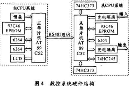 根據沖床數控系統實現的功能,完成數控系統的硬件設計。硬件設計主要包括微處理器( CPU)以及外圍擴展接口的設計。系統CPU采用雙MCU結構,設計成主從式分布結構,即分為主CPU和從CPUtI,二者之間通過RS485串口通訊。主CPU系統主要負責完成用戶加工程序的輸入處理、文字圖形顯示、自診斷、系統監控等管理工作。從CPU系統負責完成數據運算、插補計算以及位置控制、速度控制等實時作業。
