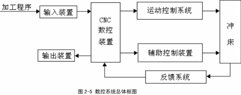 數控系統(即CNC)由輸入輸出設備、CNC數控裝置、輔助控制裝置(PLC功能)運動控制系統組成,圖2-5位數控沖床CNC系統總體框圖。