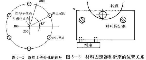 如圖5-2所盡,孔的沖壓加工指令為: