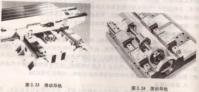 滾動導軌(見圖2 24)是在導軌面之間放置滾珠、滾柱、滾針等滾動體,使導軌面之間的滑動摩擦變成為滾動摩擦。滾動導軌與滑動導軌相比,其優點是。①靈敏度高,且其動摩擦與靜摩擦系數相差甚微,因而運動平穩,低速移動時,不易出現爬行現象;②定位精度高,重復定位精度可達0.2um;③摩擦阻力小,移動輕便,磨損小,精度保持性好,壽命長。但滾動導軌的抗振性較差,對防護要求較高。